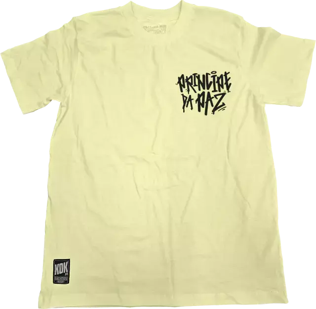 A gente cresceu, a correria aumentou, mas a promessa continua atual: “em mim vocês têm paz” (Jo 16:33). Nesta estampa, o Smilingüido aparece com postura relax, letras grandes e intervenções de graffiti que parecem sair do pôster pra camiseta. A composição mistura frases de impacto, detalhes estilo zine e um layout que respira streetwear. O resultado é um lembrete vestível: paz não é silêncio, é presença. Combina com jeans preto, tênis clean e sobreposição com jaqueta — peça pra quem quer baixar a ansiedade do dia sem perder a atitude.